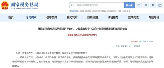 《关于延续执行农户、小微企业和个体工商户融资担保增值税政策的公告》