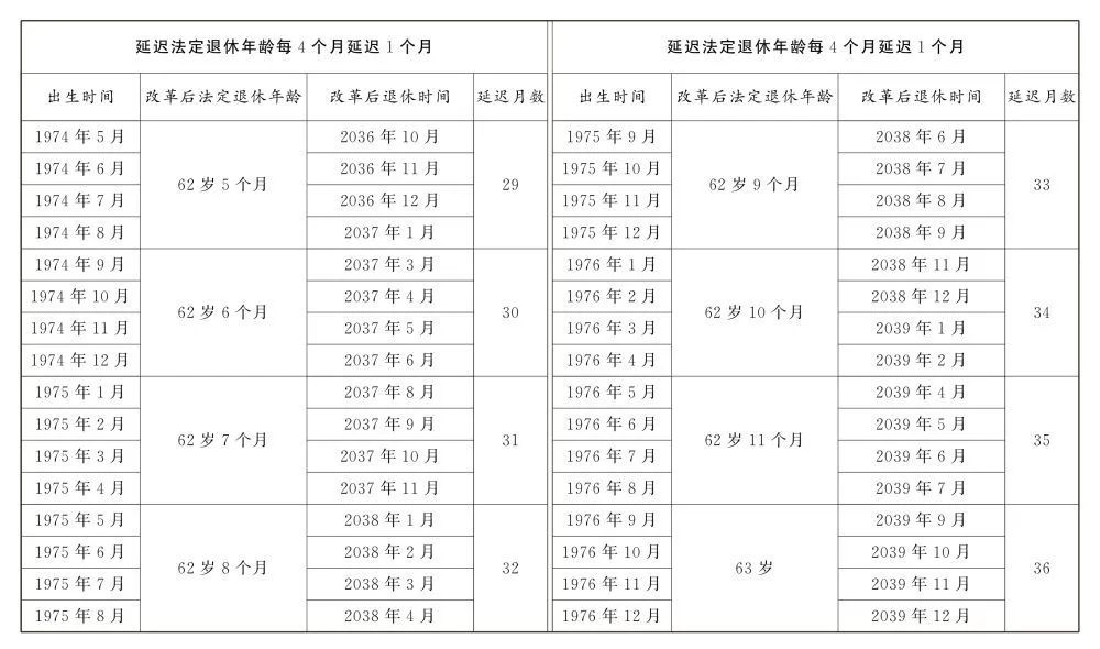 男职工法定退休年龄从六十周岁开始,每四个月延迟一个月,逐步延迟至六十三周岁。